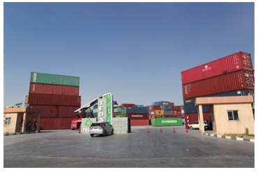 在埃及蘇伊士省的中埃·泰達蘇伊士經(jīng)貿合作區拍攝的泰達保稅倉庫和二手車(chē)交易中心
