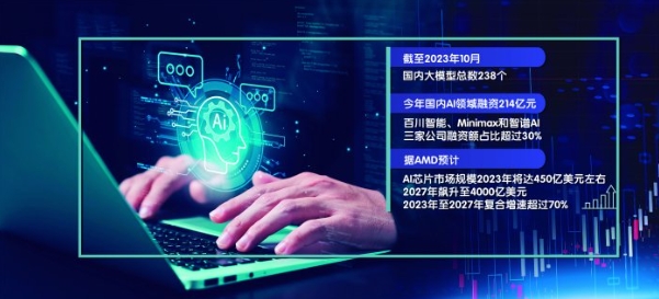 中原證券(3.730, -0.04, -1.06%)電子行業(yè)分析師鄒臣認為,AI大模型預訓練數據量呈指數級增長(cháng),算力已成為推動(dòng)數字經(jīng)濟飛速發(fā)展的新引擎。而據AMD預計,2023年AI芯片市場(chǎng)的規模將達到450億美元左右,至2027年將飆升至4000億美元,2023年至2027年復合增速超過(guò)70%。