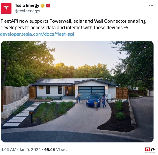 特斯拉 FleetAPI 新增支持 Powerwall 能源系統等產(chǎn)品,便于開(kāi)發(fā)者創(chuàng )建第三方應用 09:20:54