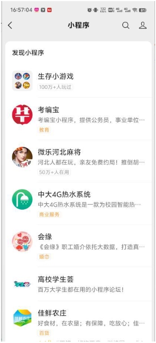 包括生存小游戲、考編、麻將、熱水系統、婚介、高校學(xué)生論壇以及農莊食材等等。