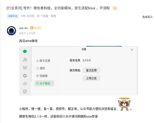 消息稱(chēng)微信 Linux 原生版重構,全新 1.0 版本開(kāi)啟測試 09:01:08