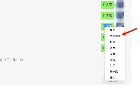 用戶(hù)鼠標右鍵點(diǎn)擊一條文字消息,然后點(diǎn)擊“放大閱讀”按鈕,就可以使用這個(gè)新功能。此外,按住 Ctrl 鍵 + 鼠標左鍵點(diǎn)擊文字消息即可放大,按 Esc 鍵后可取消放大。