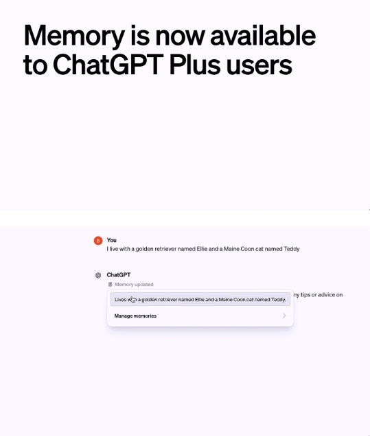 OpenAI 向 ChatGPT Plus 用戶(hù)開(kāi)放“記憶”功能 09:04:31