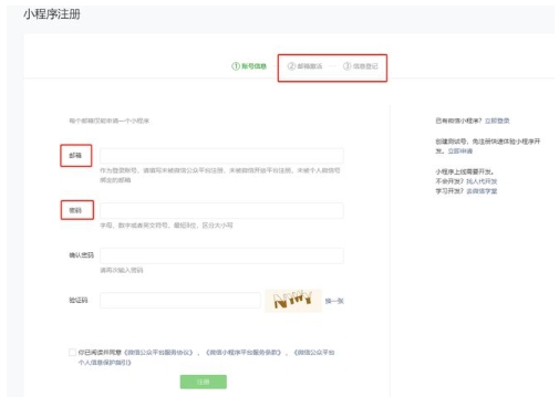 1、繼續回到小程序后臺首頁(yè)界面,填寫(xiě)小程序信息、選擇小程序類(lèi)目,即可點(diǎn)擊備案。