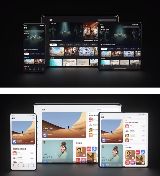 此前華為在鴻蒙 HarmonyOS NEXT 宣傳視頻中展示了華為視頻 App、應用市場(chǎng) UI 設計情況,同款 App 在不同設備間的顯示效果保持統一性。