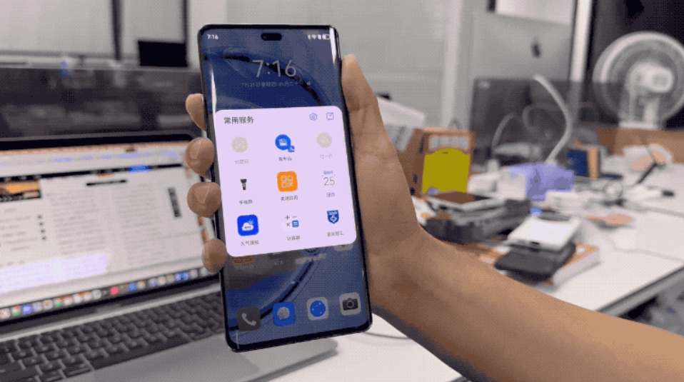 差點(diǎn)忘了,麥芒30還有一個(gè)特別有意思的設計,那就是在機身中框的左上角有一顆獨立物理按鍵,官方將其稱(chēng)為X鍵。單擊它時(shí)就能直接呼出常用APP九宮格頁(yè)面,你可以提前將自己常用的APP「放入」其中,例如像什么付款碼、手電筒、指定聯(lián)系人等等等等。