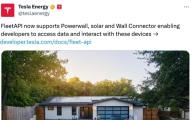 特斯拉 Tesla Energy 今天在 X 平臺發(fā)布貼文,宣布 FleetAPI 現已支持 Powerwall 能源系統、solar 太陽(yáng)能板及 Wall Connec