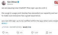 OpenAI 首席執行官 Sam Altman 在 X 平臺發(fā)文稱(chēng),將暫停 ChatGPT Plus 新用戶(hù)注冊。開(kāi)發(fā)日后使用量的激增超出了我們的承受能