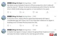 天風(fēng)國際分析師郭明錤今日在推特爆料,根據他最新調查顯示,蘋(píng)果最大的供應商富士康在印度的 iPhone 生產(chǎn)基地或將在 2022 年下半年